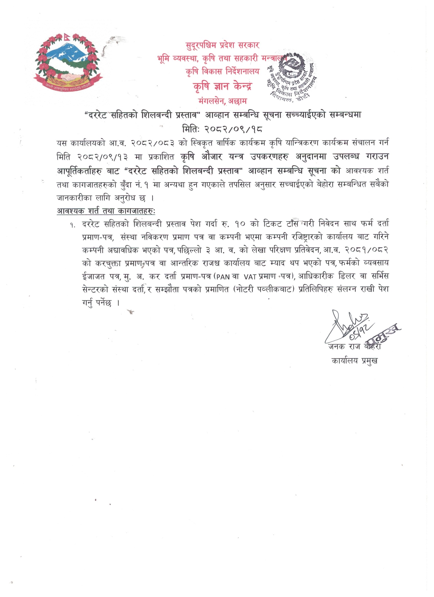 Directorate of Agriculture Development